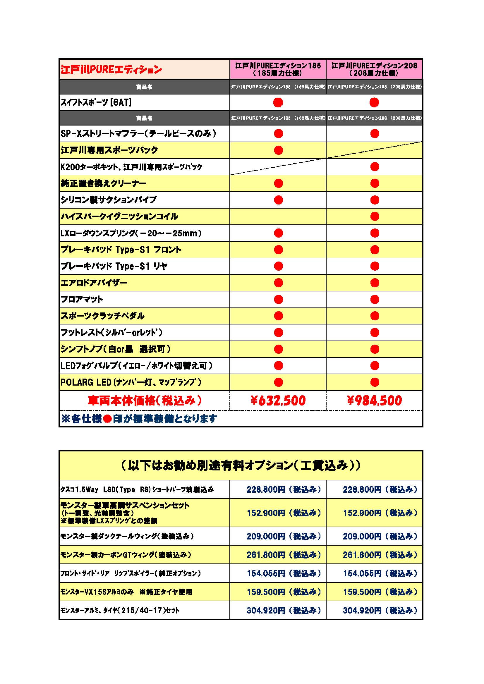 今お乗りのスイフトスポーツのカスタマイズを考えている方のために江戸川店がオススメするフルカスタマイズパッケージをご用意致しました!!