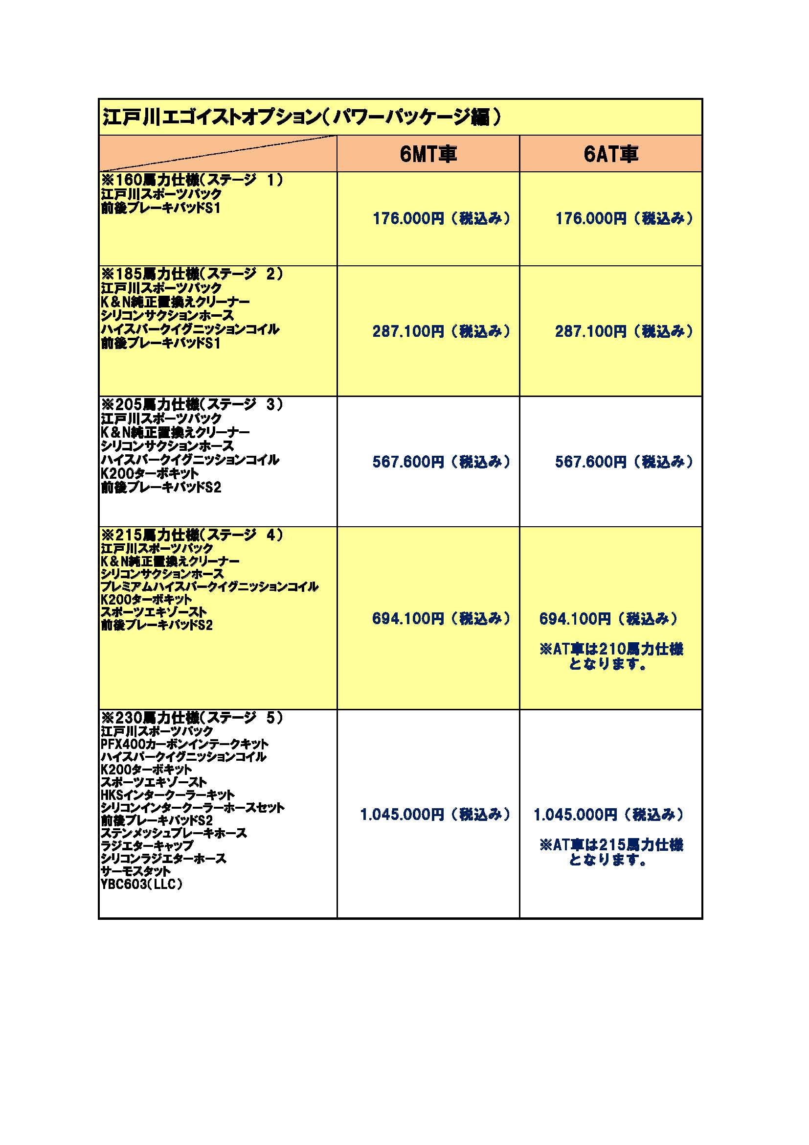 ?6AT専用パワーパッケージステージ5(215馬力仕様)