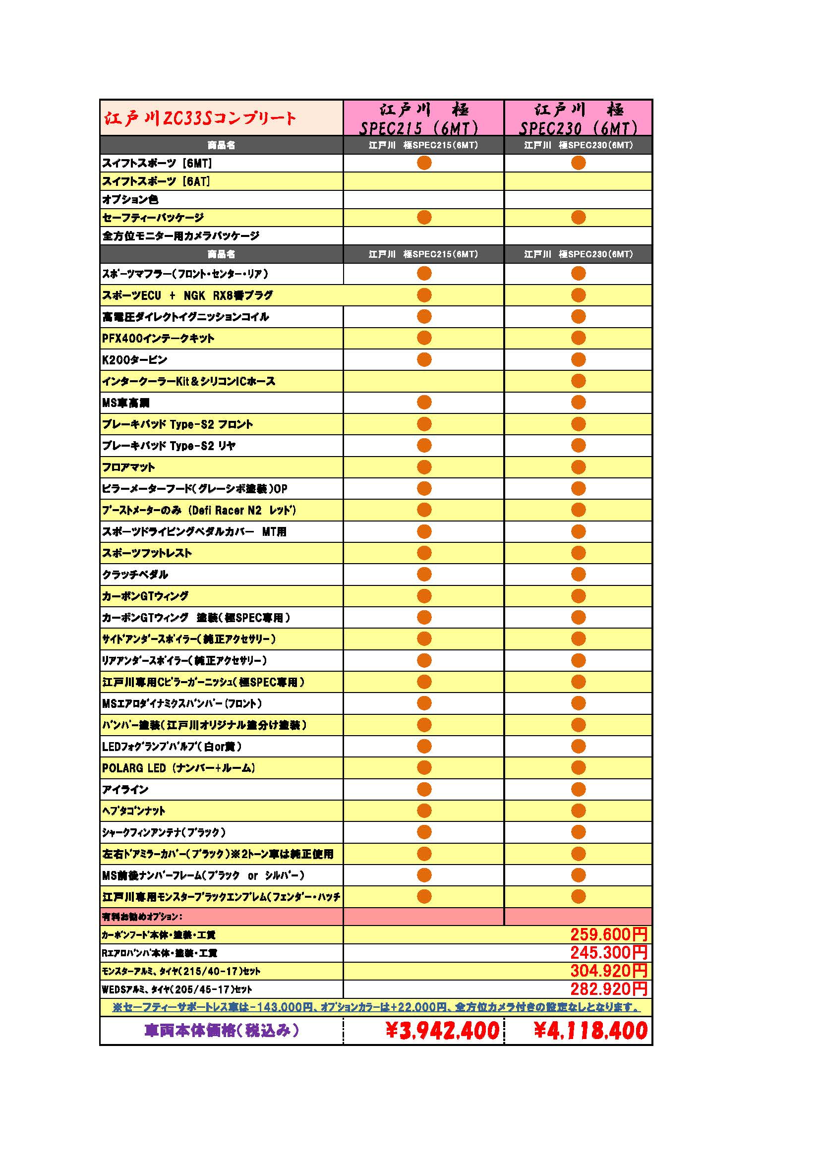 江戸川 極 SPEC230(6MT):¥4,118,400〜(税込)