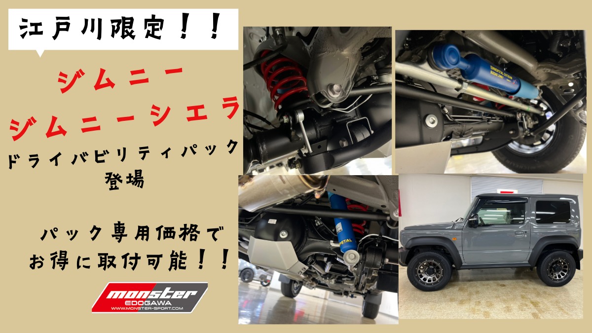 モンスター江戸川店から、ジムニー・ジムニーシエラの乗り心地と安定性を徹底改善する「ドライバビリティパック」をご提案します!
