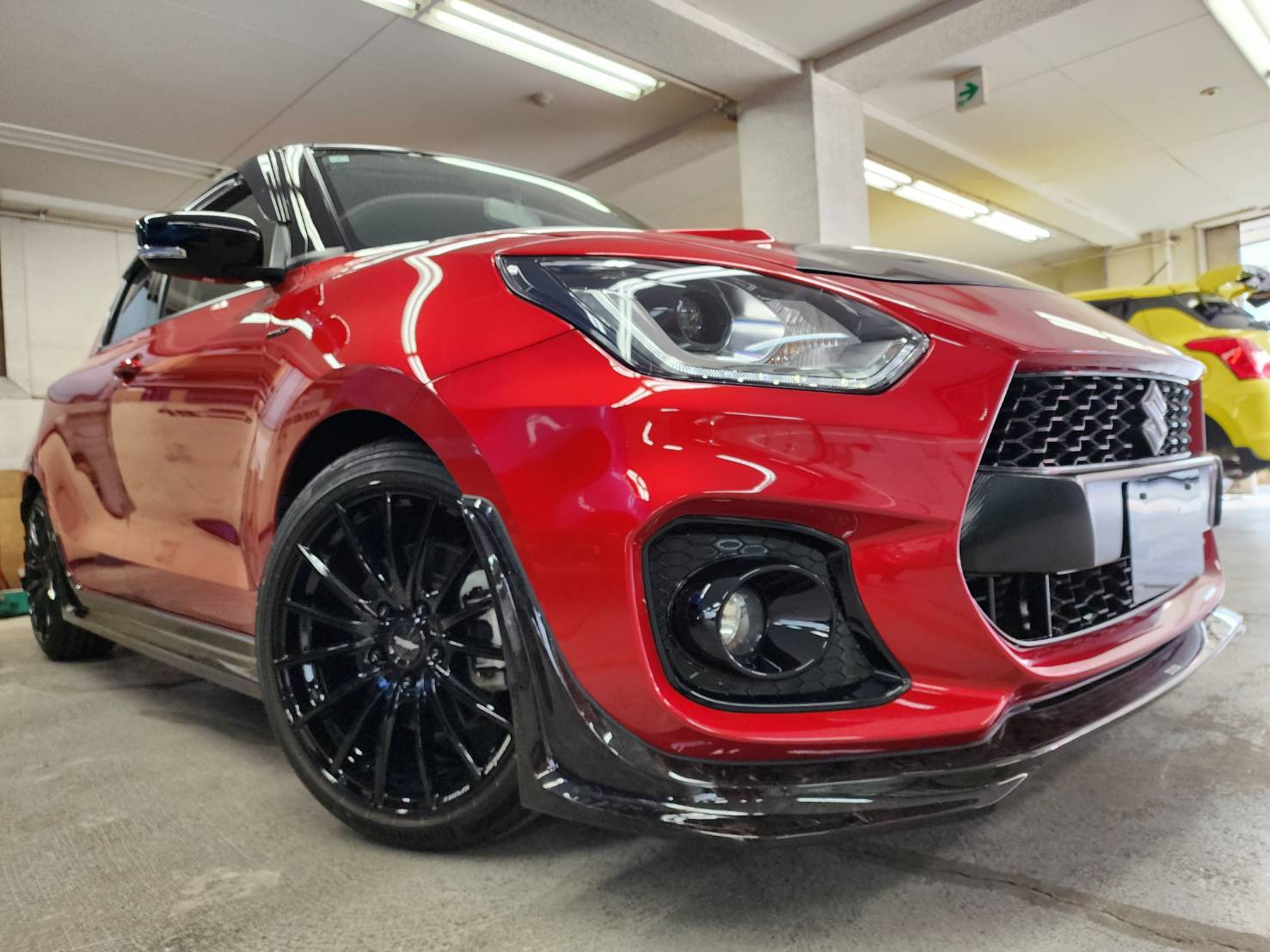 標準のクリア塗装に加え、モンスター江戸川店限定のキャンディ塗装によるカスタマイズも承ります。フォージドカーボンの質感を活かした深みのある色彩を楽しめます。