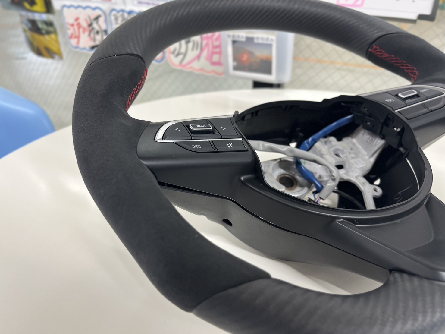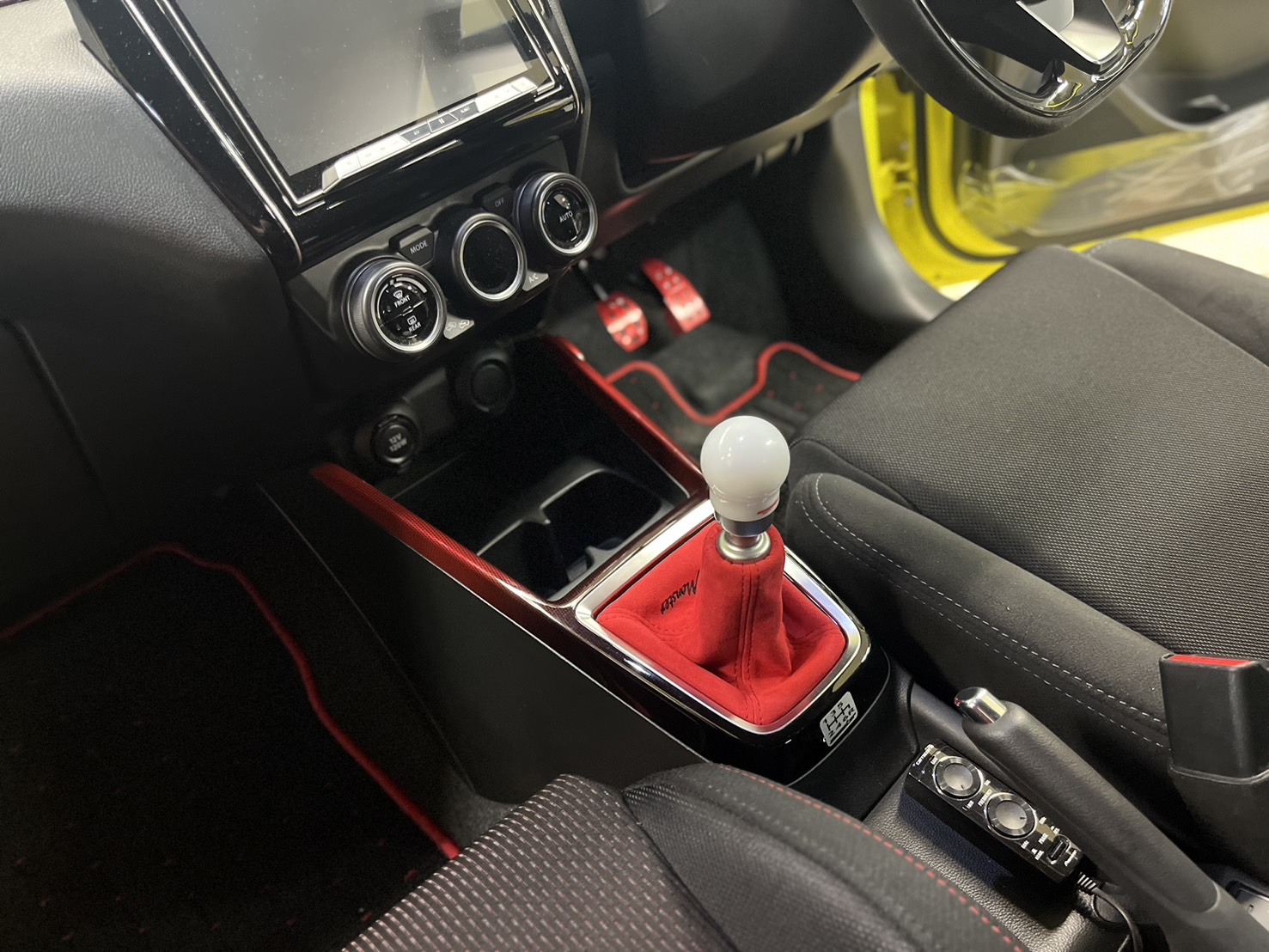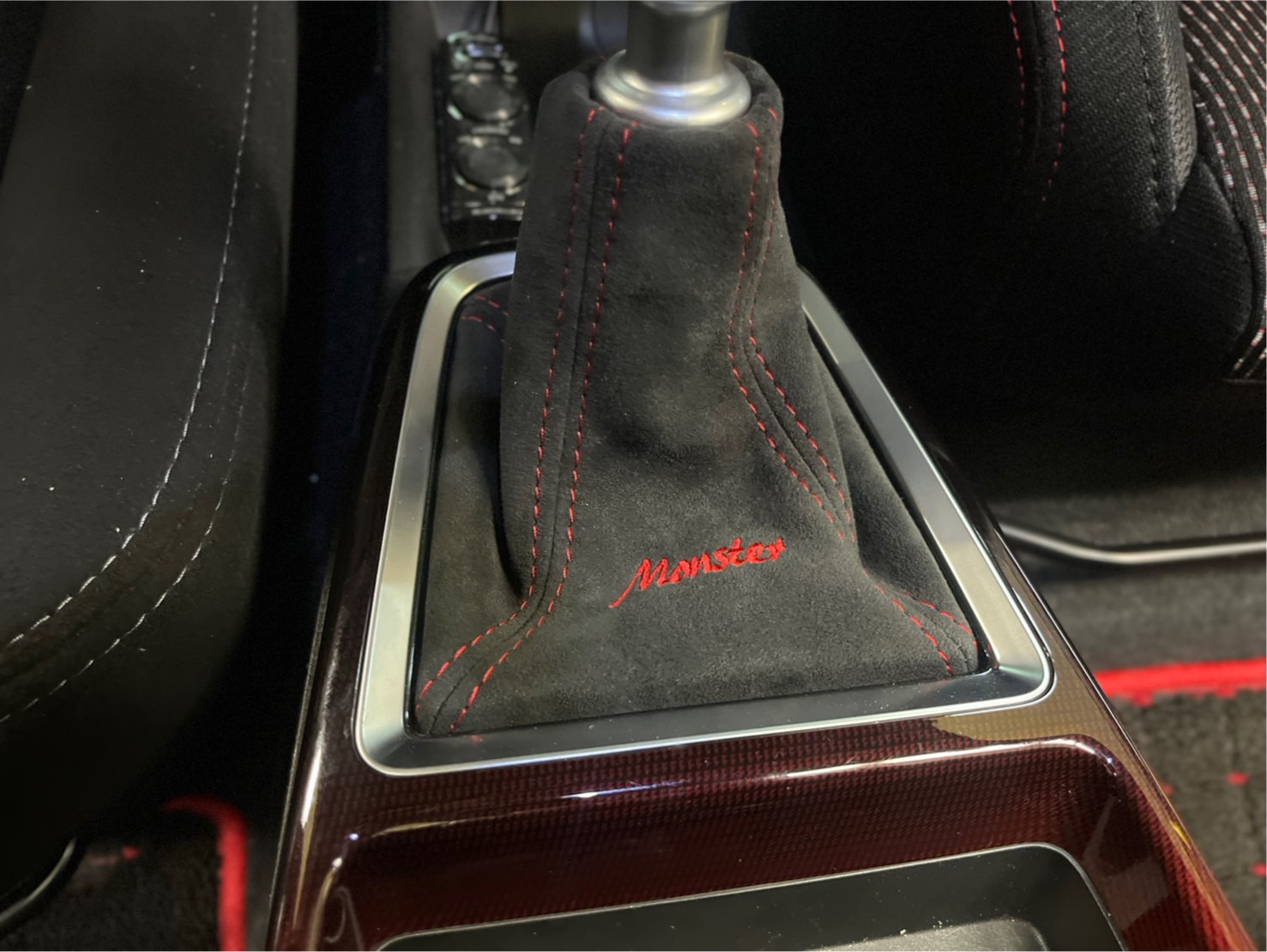 江戸川店ではステアリングに合わせてアルカンターラで作り上げたシフトブーツもご用意