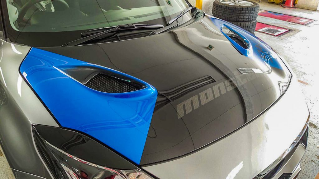 江戸川オリジナルの塗り分けを施したエアロバンパー・カーボンフードを装着