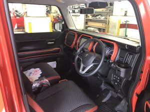 リアガラスなどのモンスタースポーツのデカールやRAYS製ホイールを装備する事でハスラーにアクセントを与えました!