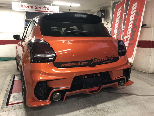 今までは純正バンパーでもスタイル良くキマッていましたが、モンスター製のエアロバンパーで見た目がガラッと変わりスポーティーで一目では「ホントにスイフトスポーツ!?」と思うくらい印象が変わりました!!