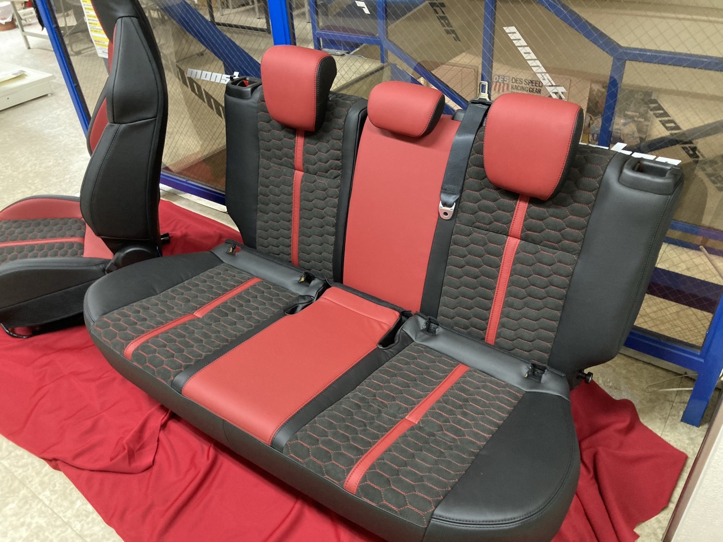 レザーシートのカラーは色の選択が可能ですので、お客様と打ち合わせの上ボディカラーに合ったスタイルで御作り頂けます。