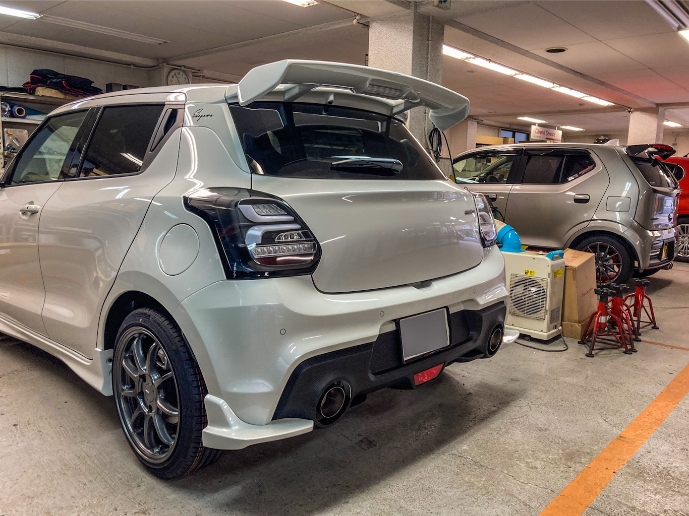 江戸川店オリジナル塗装のモンスター製エアロバンパー・カーボンGTウィング・江戸川専用Cピラーガーニッシュ・江戸川専用学習機能型ECU等々