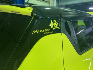 イエローのルーフをブラックでラッピング、Cピラーガーニッシュはこれまで物ではなく極と雅で専用で設定した特別仕様!