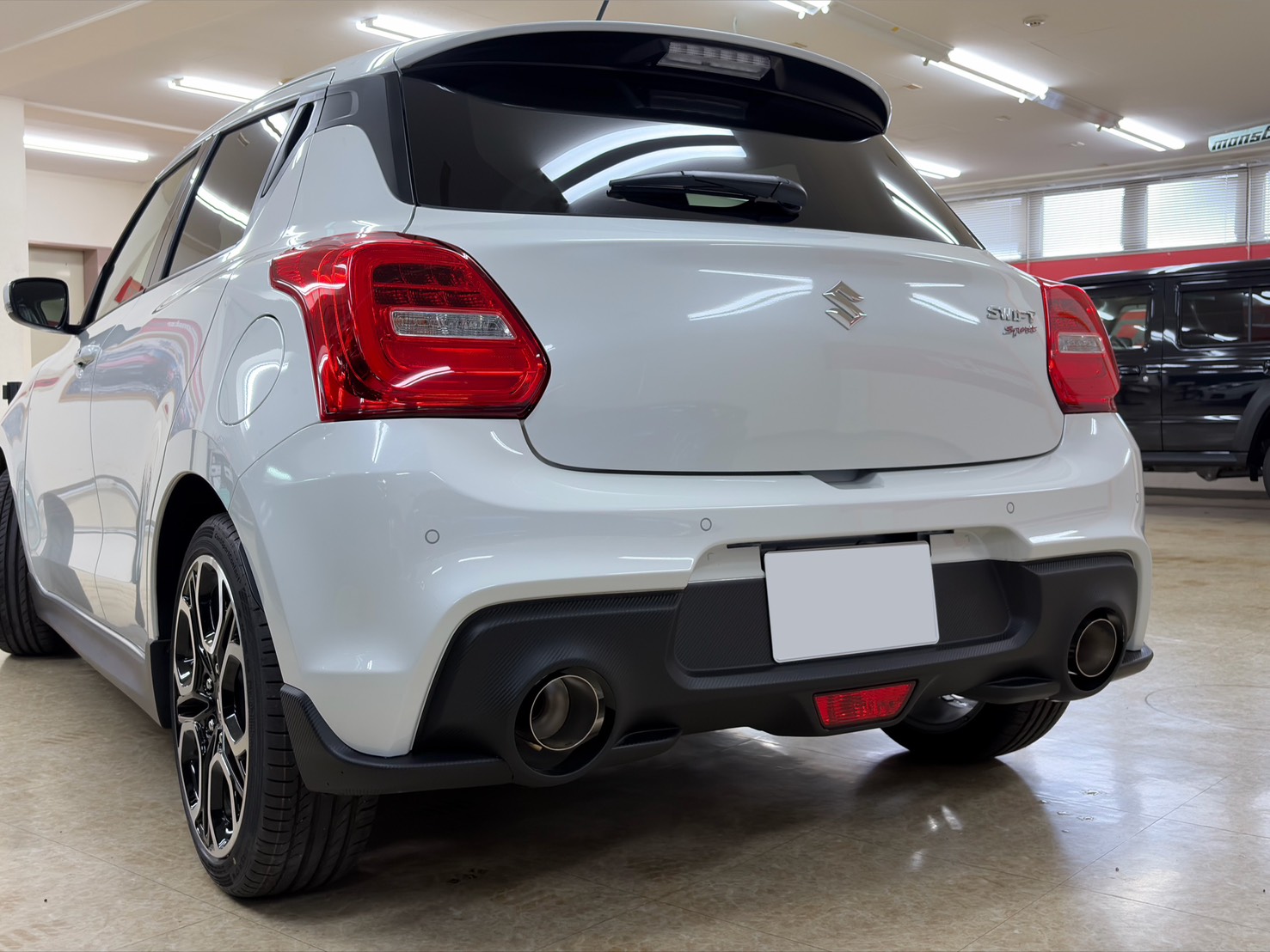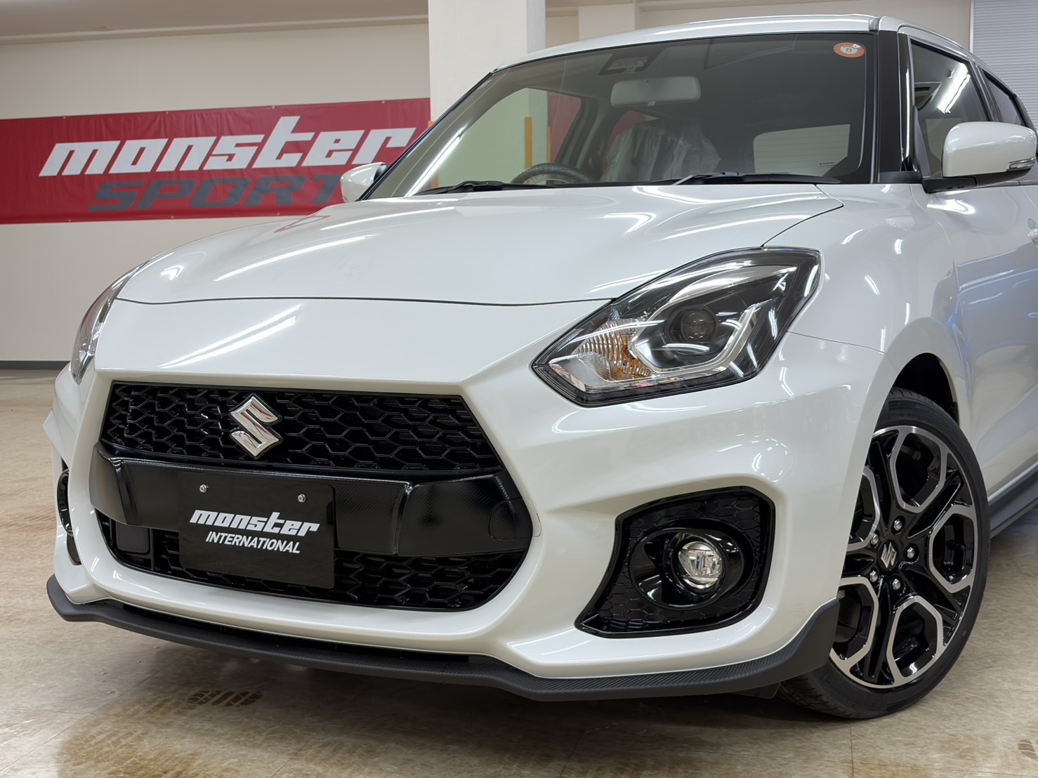 アンダースポイラー(チョップドカーボン仕様)は、本来モンスタースポーツ限定のコンプリートカーのみの設定・一般販売をしていないアイテムですが、今回販売するスイフトスポーツにのみ取付することが出来ました!!