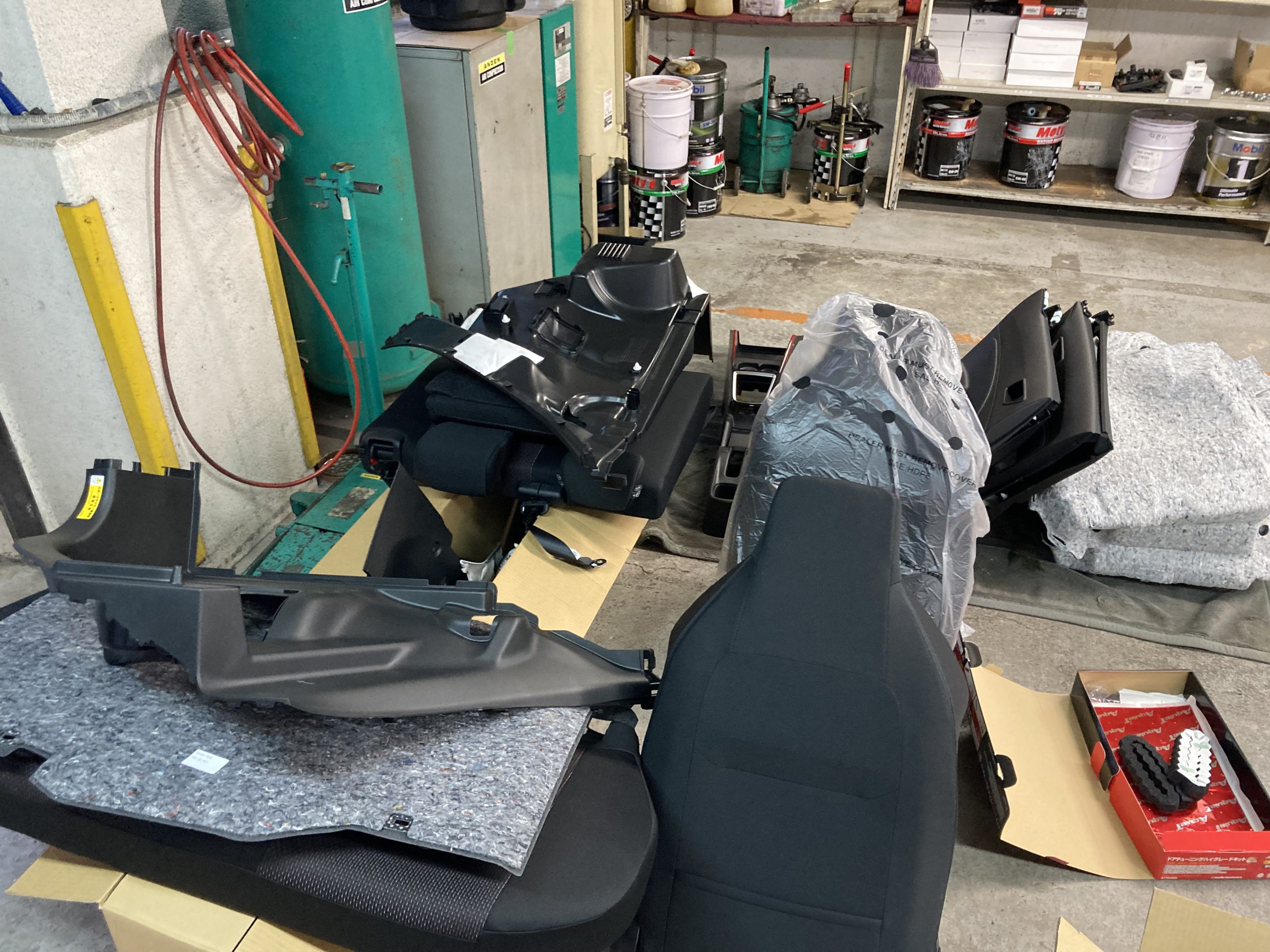 車内の内装を全てはがしデッドニング作業を現在行っています。