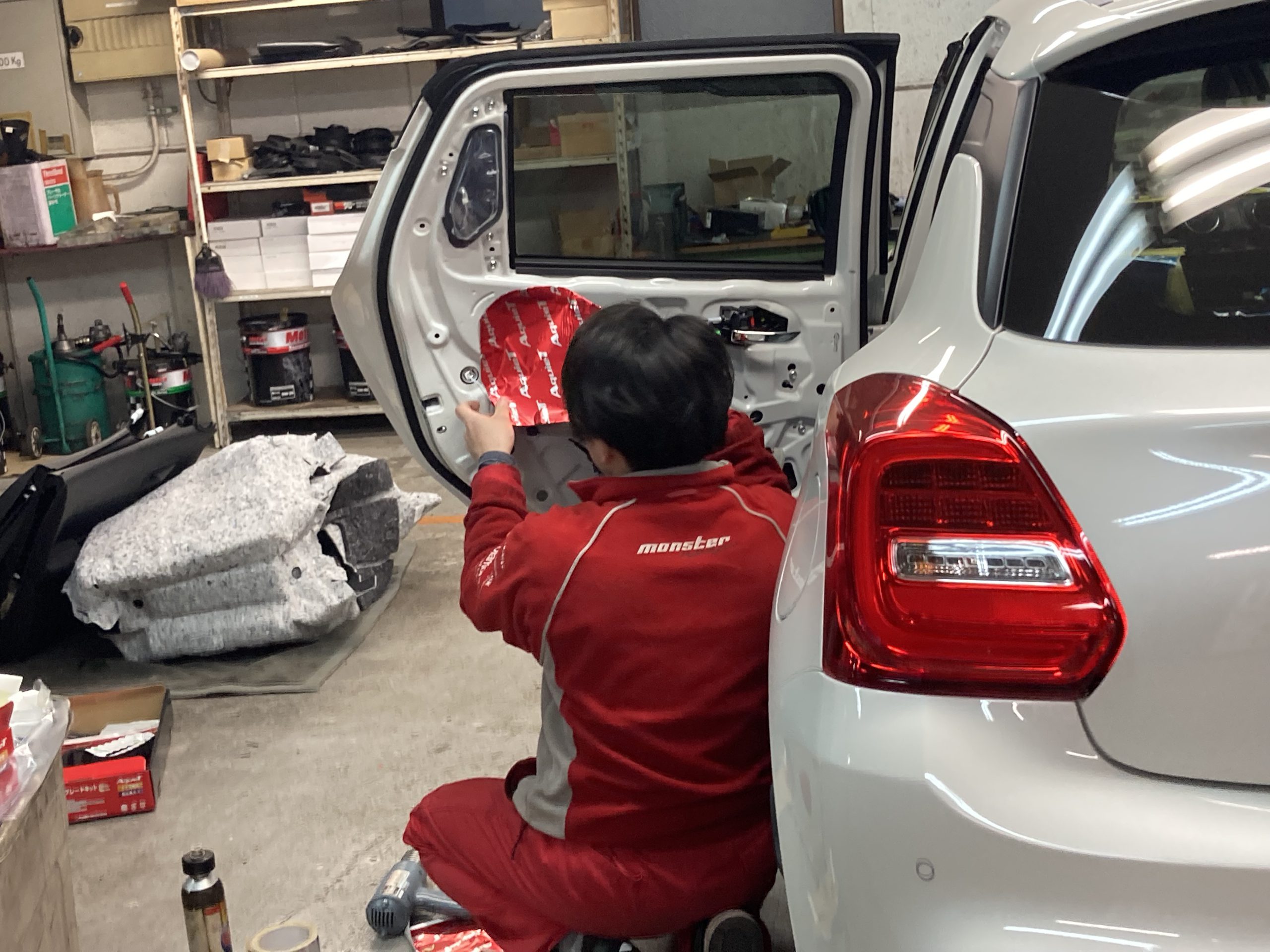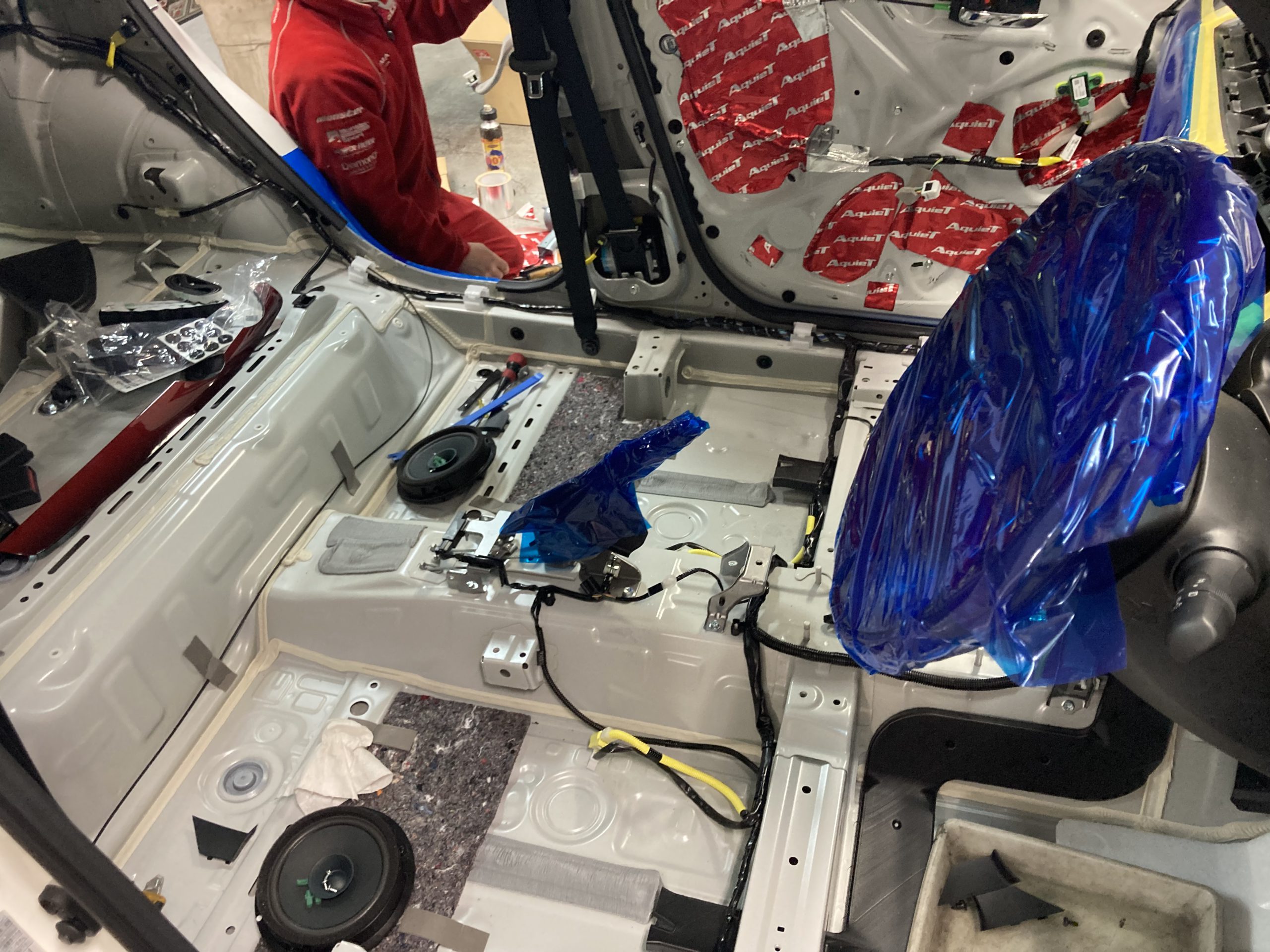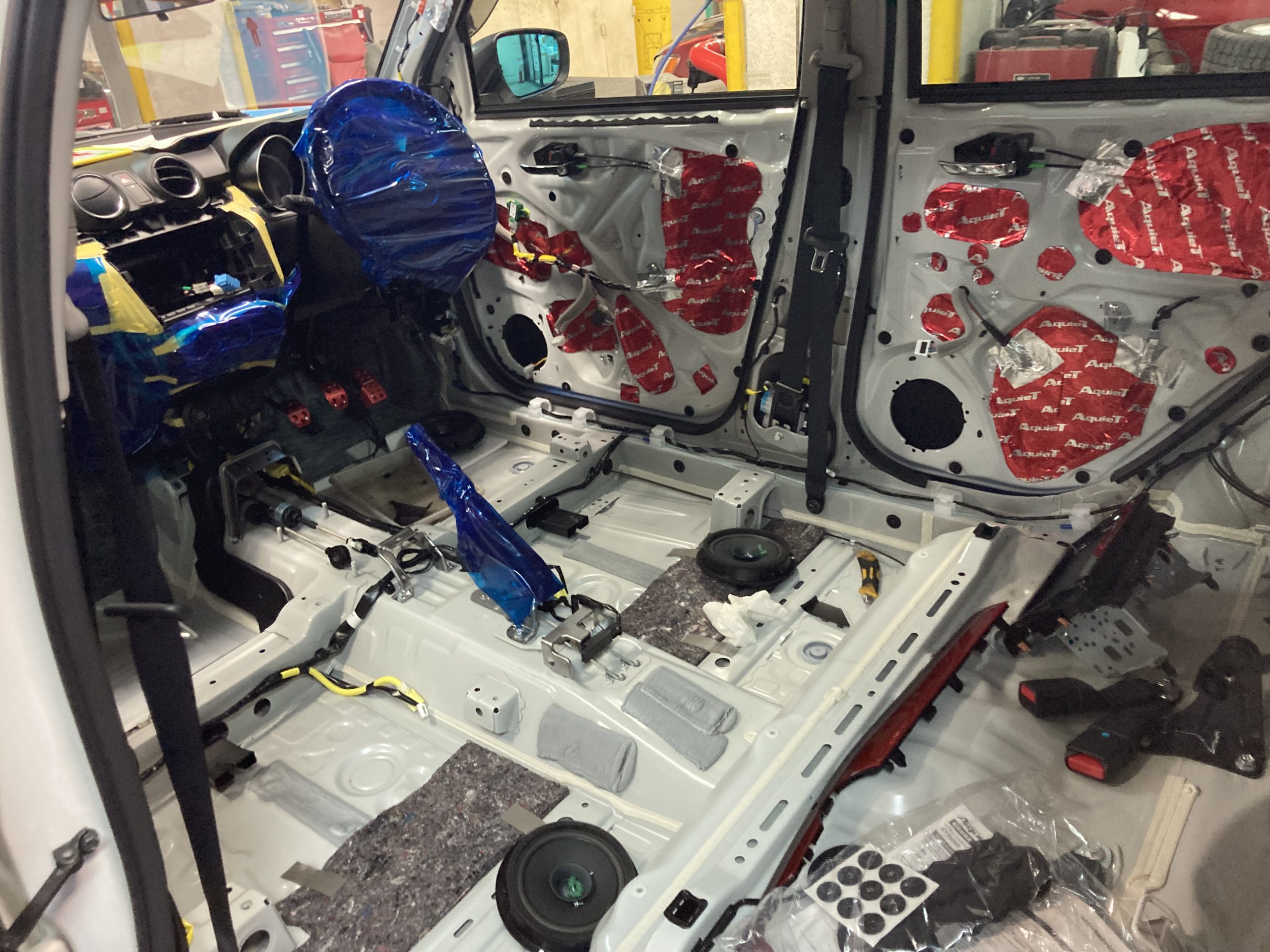車内の内装を全てはがしデッドニング作業を現在行っています。