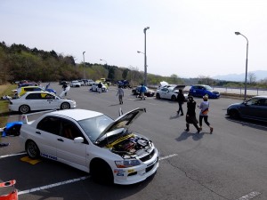 午前中はフリー走行で走る走る! 疲れを知らない皆様でした。 30分もすれば疲れて疎らになるかと思いきやオフシャルの想像を超えた元気さでした。同乗走行をされた小野寺選手、早川選手はひっぱりだこで休む暇がありません。 両選手は皆様のやる気満々さにへとへとになっておりました。