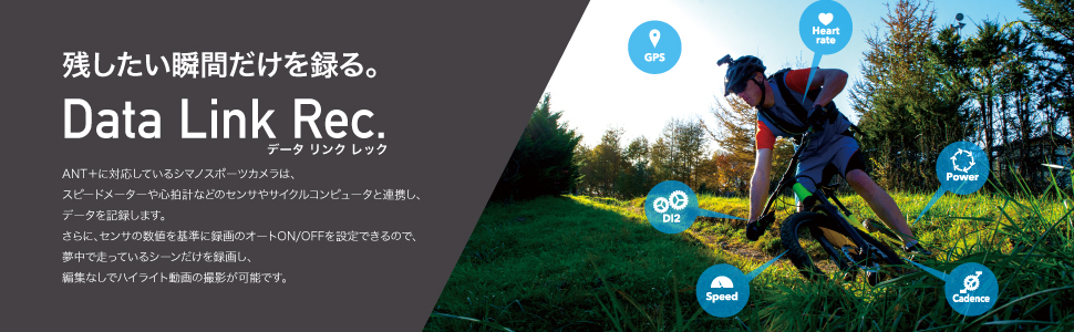 各種ANT+センサーと連動した撮影が可能で、ライディング中に操作をしなくても、残したいシーンだけを無駄なく撮影することができ、走りに集中できます。