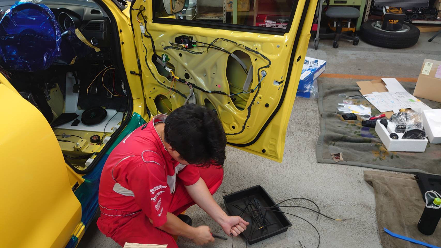 4枚のドアーをしっかりとデッドニングする事で音楽を車内に閉じ込め室内に臨場感を生みます。