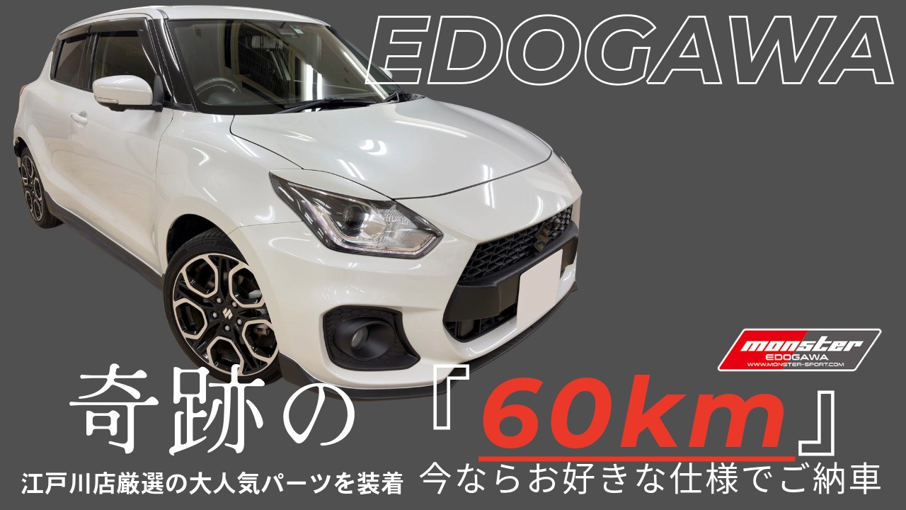 ⚡️【超稀少】走行わずか60km!スイフトスポーツ最終モデルが登場!⚡️ モンスター江戸川より、まさに**「新車クオリティ」**の特別な1台をご案内します。✨ 新車販売が終了した今、これほどの低走行車 …