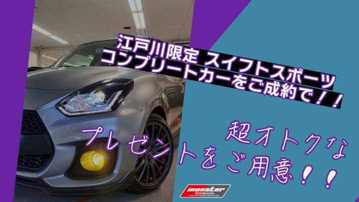 江戸川店限定のスイフトスポーツ コンプリートカーをご成約で嬉しいプレゼントをご用意致しました!! 3月30日(土曜日)~4月21日(日曜日)まで・先着7名様に限り!! 江戸川限定スイフト …