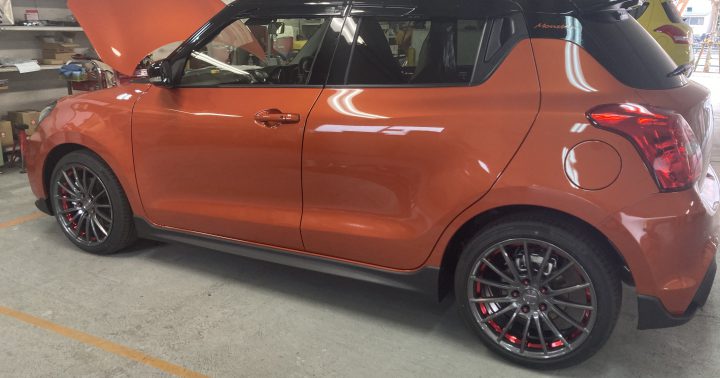 モンスタースポーツから販売しているホイールVX16Sを初めてオレンジボディに合わせました!! スポークから見える赤いラインがばっちり合ってます!! 当店で購入からお取り付けまで可能ですので、足元もモン …