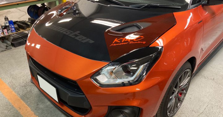 江戸川ではバンパーやボンネットをオリジナルの塗り分けを行っております! 塗り分けは、クリアにオレンジを混ぜたキャンディ塗装・クリアにブラックを混ぜたブラッククリア・MONSTER文字を通常クリアで際立 …