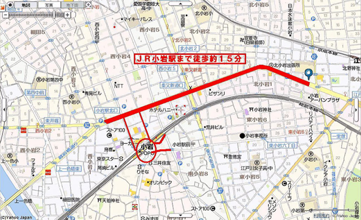 赤ラインで記されている蔵前橋通りを小岩駅に向かっていくだけで7軒あります。おすすめについては、スタッフにお気軽にお訊ねください。
