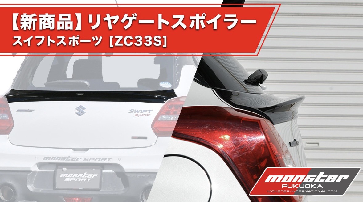 MONSTER SPORT(モンスタースポーツ)より、 スズキ・スイフトスポーツ(型式 ZC33S)用の専用パーツ「リヤゲートスポイラー」が新登場。600gの超軽量。ボディラインに自然に繋がる造形で、整流効果を追求したリヤゲートスポイラーです。