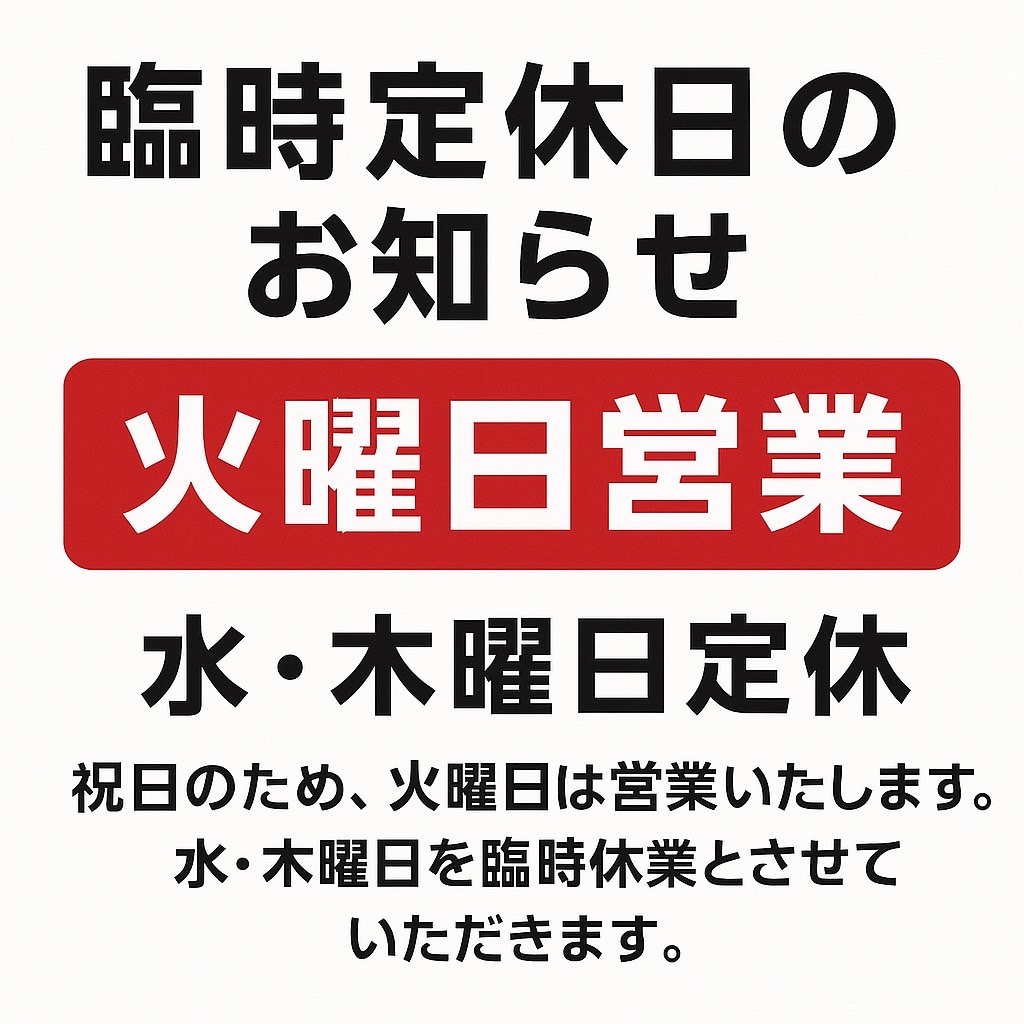 その代わりに、今週に限り【水曜・木曜】を臨時定休日とさせて頂きます。💦