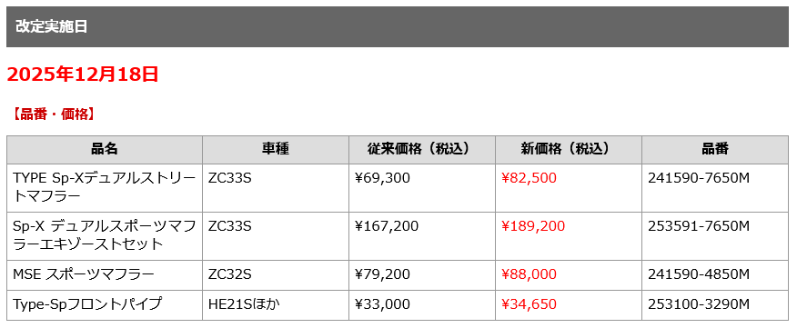 この度、モンスタースポーツ マフラー製品下記4品目につきまして、