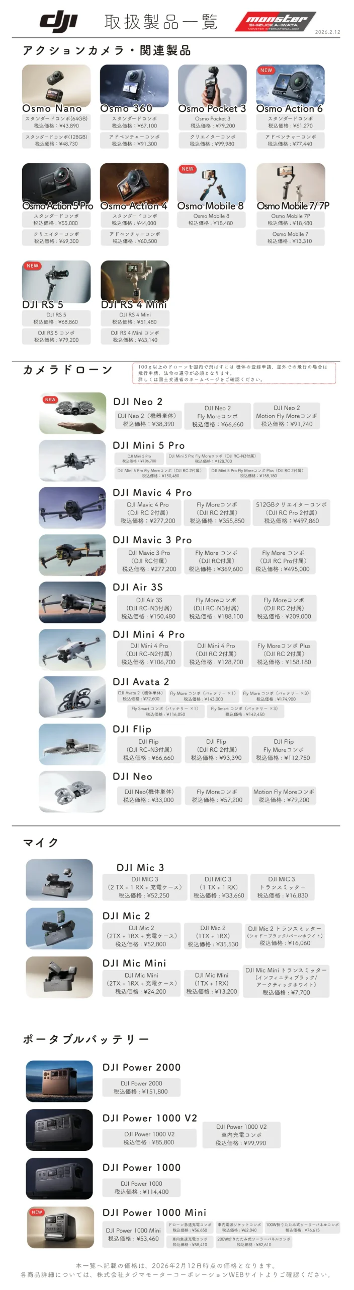 当店取扱いDJI製品一覧・価格 PDFはこちら [ 約1045KB]