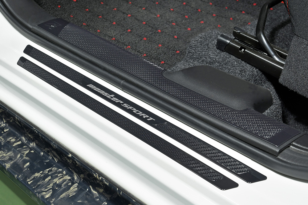 繊細かつ高精度な表面凹凸で表現したカーボンファイバー調テクスチャーが、サイドシル周りをスポーティーに演出します。