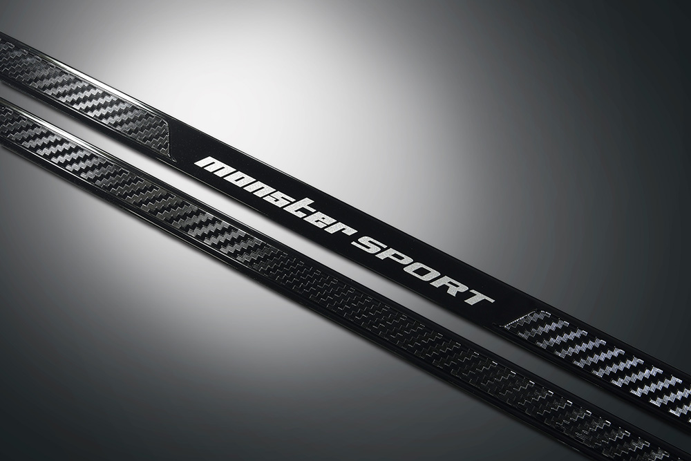 中央にはアクセントとなる「MONSTER SPORT」ロゴ、端部にはスクエアロゴをあしらいました。