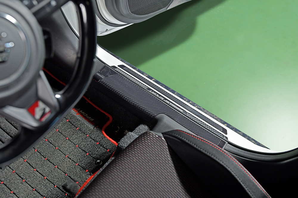 乗り込むたび、足元のブランドロゴがスポーツドライビングへと誘います。