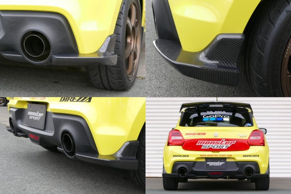 ホイールアーチを前方まで覆うことで、リップスポイラーながらもフロントをよりワイドでスポーティーな印象へ大きく変化させます。 センター部にはMONSTERエンブレムステッカーをあしらいました。