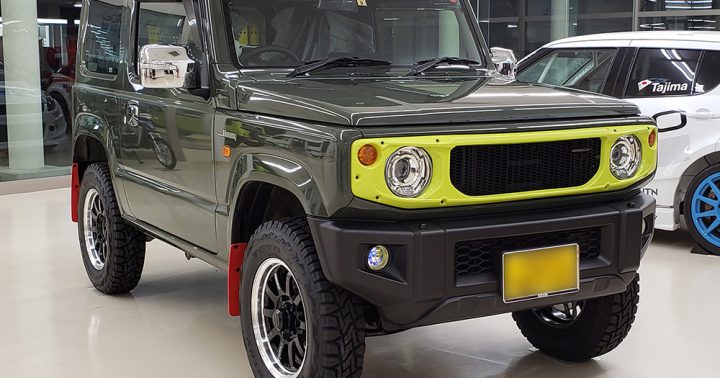 お客様のおクルマをご紹介させて頂く「ユーザーカーレポート」。第5回はジャングルグリーンの車体色とキネティックイエローのTOUGHフロントグリルを装着した、遊び心満載のジムニー[JB64W]です!